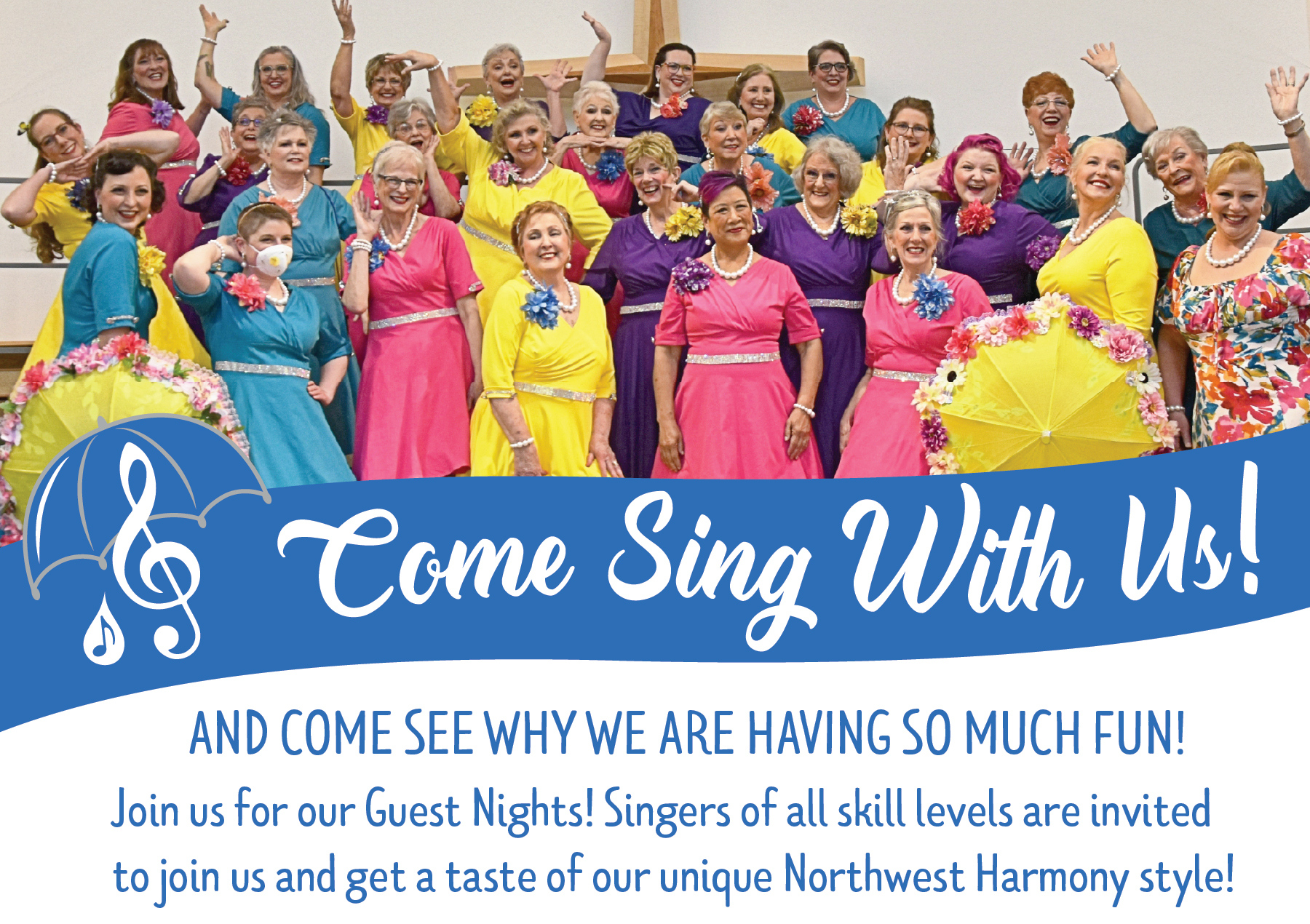 Vancouver United Church of Christ 1220 NE 68th St., VANCOUVERCome and join us for guest night! Come and Sing with Northwest Harmony Chorus and see why we are having so much fun! Whether you are any experienced singer or a shower singer extraordinaire we would love for you to come and get a taste for our special Northwest Harmony flavor! Come for a unforgettable […]